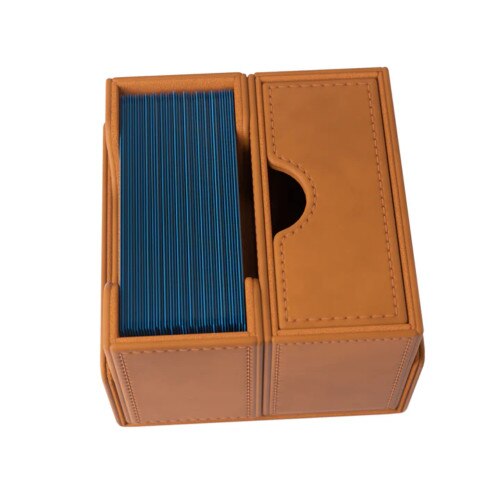Bring your gaming adventure to a whole new level with our Altered product line! The Deck Wallet is an officially licensed premium deck box specifically designed for the needs of Altered players. You can identify your deck at first sight through the pocket and cut-out without opening the box. The Deck Wallet is perfectly sized to hold a full deck of 50+ double-sleeved cards – or even 2 full decks when the drawer is removed. UNIQUE FEATURE: The innovative drawer compartment can easily be tilted to the side for convenient access to the pull-out drawer for tokens and accessories! The flap of the Deck Wallet is equipped with our highly rated CONVERTIBLE system. Strong magnets keep the setup stable and close the box safely. This premium deck box comes in a stylish and adventurous appearance with hot-stamped and foiled logos.