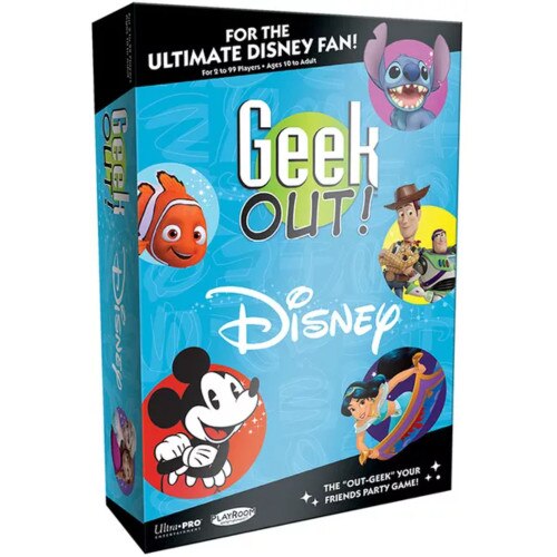 Geek Out! is a party game that can determine once and for all which player is the most knowledgeable about your favorite pop culture subjects! In the game, you draw cards asking you to list a certain number of things which fall under a certain category: comic books, fantasy, games, science fiction, and miscellaneous. Before you begin, however, the other players may try to steal your points (and bragging rights!) by bidding to list even more than the card requires. The bidding continues until one player is ready to "out-geek" their friends. Collect a predetermined number of cards, and you win! Geek Out! Disney features 350 questions about ninety years of Disney productions.