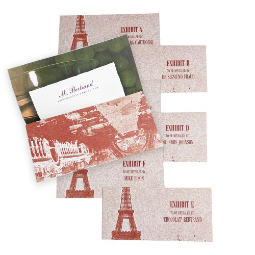 Everyone's a suspect when murder is on the menu. And with a Classic Detective Murder Mystery you have everything you need to serve up the perfect murder mystery dinner party. First the invites, you choose which of your friends play which devious suspect and invite them to come along as that character. Then the shopping list, menu suggestions and recipes. Plus of course...a really tasty murder to solve. In Death by Chocolate, it's Easter Sunday 15 April 1900 and Paris is the centre of world attention as millions of visitors arrive for the opening weekend of the International Exposition. Amongst them is an elite but diverse group of individuals staying at the Hotel Paradiso. As they gather for dinner, however, the peace of the hotel is rocked by an explosion. Billy Bonka, the foremost chocolate manufacturer in America, is found dead in his room, having apparently been killed by an exploding Easter Egg. Suspicion falls on the people around this table. Your task is to discover who that killer is. Fortunately the famous amateur detective Hercule McClue is on hand to assist your investigations. This game includes a DVD (or downloadable content is available) with special cameo appearance by Michael Winner. This game is guarantee to be drop dead fun, and that by the end of the evening one (or more) of the suspects, your friends will be caught out as the murderer! This game is for 6 - 8 players and suitable for age 13 years and over.