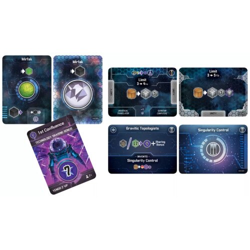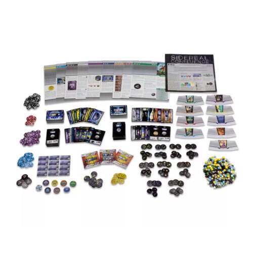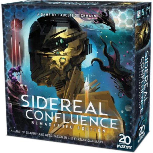 Remaster trading and negotiation in the Elysian quadrant The acclaimed negotiation game has been remastered! • Astounding new cover art by Kwanchai Moriya • Updated card layout • Cardboard turn and bidding trackers • Included teaching guide • Improved rulebook flow for easy setup and learning - includes more visual examples and clear key terms • Updated insert Tauceti Diechmann's thorough design sits at a unique intersection of simple turn order and complex chains of trading. This refined edition re-implements the gameplay that makes Sidereal Confluence a standout: • Asymmetrical gameplay - Play as one of 9 unique alien species, each with a unique story and playstyle to match • Simultaneous turns - surprisingly little downtime as everyone acts at the same time • Complex trades with simple notation - each converter tells you the approximate value of both inputs and products, helping you negotiate fair trades • Information is open - all resources and technologies are public knowledge. • Almost everything is tradeable - Not just your resources! Planets, ships, technology, future production and more. • Deals are binding - even across turns. If you make a promise during a trade, you must deliver. Cooperation is the key to be the top competitor Critical acclaim for the first edition: Shut Up & Sit Down review "Sidereal creates a virtuous circle - good behaviour is rewarded, which creates more good positive behaviour that is in turn rewarded…players tend to be so nice that Sidereal is the only game where a player can go "Can I just have this and I'll owe you one?" and you might say "Yeah!" Because a favour is valuable, and that is a really interesting game mechanic." The Dice Tower review "Dice Tower Judgement - Uniquely Excellent!" CONTENTS: • 380+ redesigned cards • 230+ Tokens and Tiles • 200+ Resource Cubes • 21 Boards • 1 Rulebook • 1 Teaching Guide • 9 Player Screens