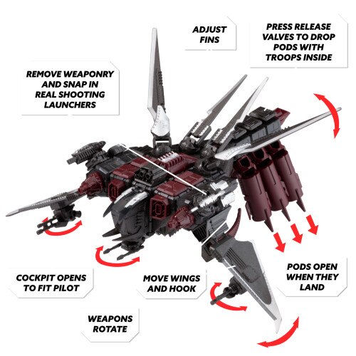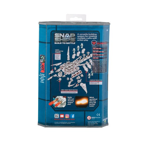 The Snap Ships set for Scorpion includes instruction for three different builds that you assemble yourself and then engage in battle with real shooting weapon play! Scorpion K.L.A.W. Troop Dropper is flown by a Komplex pilot, blasting its way to a ground target and releasing six Komplex Fighters via deployment pods for hand-to-hand battle. Add the mysterious UJU tech piece to the ship, and it suddenly has new abilities!