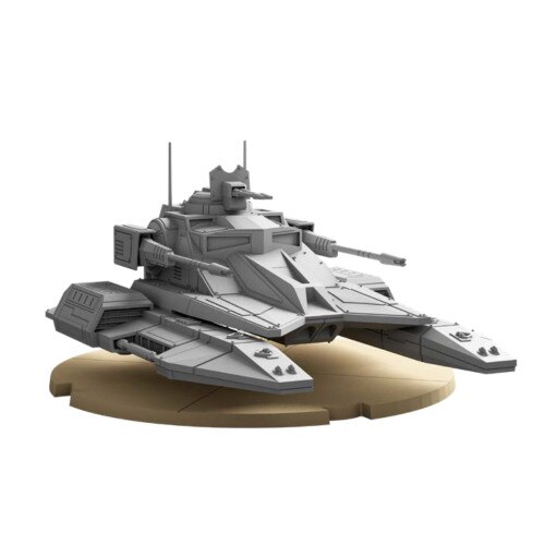 A light repulsor tank designed with the tactical flexibility of a starfighter, the TX-130 Saber-class fighter tank is agile and swift, making it an ideal match for the heightened acuity of Jedi generals like Aayla Secura or Plo Koon. For a battle tank, the Saber-class can be elegant as it nimbly weaves across the battlefield, slashing entire formations with a beam cannon or ripping apart enemy armor with twin laser cannons. Within the TX-130 Saber-class Fighter Tank Unit Expansion, you'll find everything you need to incorporate one of these powerful repulsor tanks into your Galactic Republic armies, beginning with an unpainted and beautifully detailed TX-130 Saber-class Tank miniature that can be assembled with its missile pod doors open or closed. In addition to choosing how the tank's missile pods are assembled, you can also customize the look of the turret, choosing between a twin laser turret or a beam cannon turret. On top of how it looks, you can also customize how your Saber-class tank functions in battle with ten upgrade cards that invite you to swap out its pilots, weapons, ordnance, and comms systems.